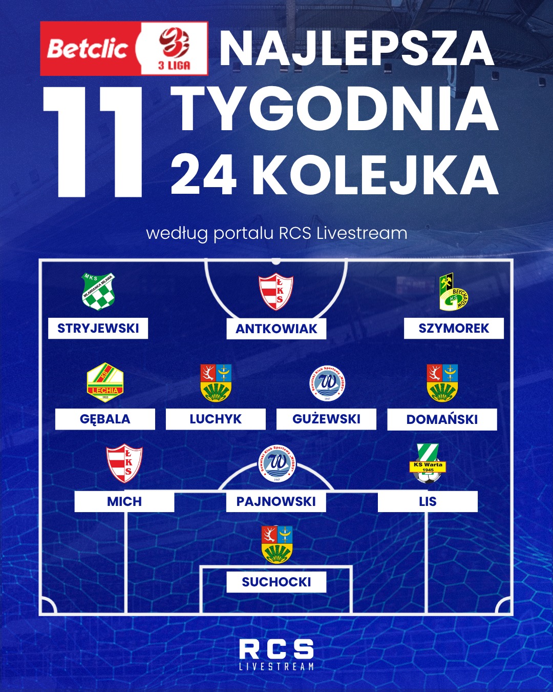 Jedenastka 24. kolejki Betclic 3. Ligi (gr. I) według RCS Livestream: